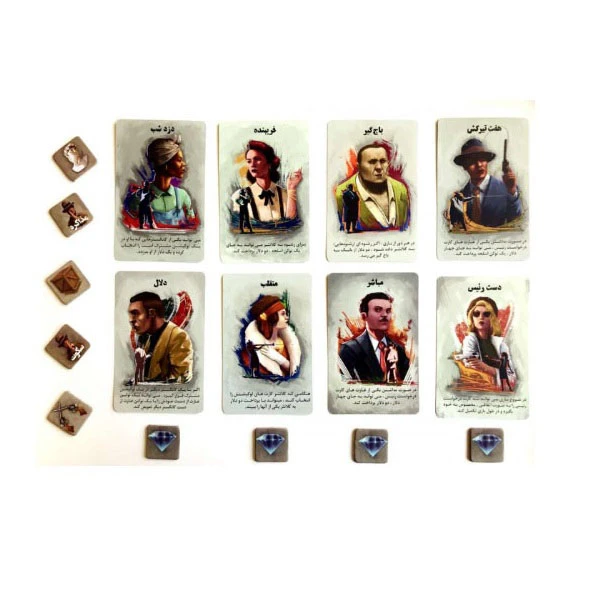 اقلام همراه: ۶ کارت لوکیشن ۸ کارت شخصیت ۸۰ کارت دلار ۴۸ کارت انتخاب لوکیشن ۱۹ کارت درخواست رئیس ۷۸ توکن غارت ۱۴ توکن سکوت و مذاکره ۲ توکن تعطیل ۱ توکن کلانتر دفترچه راهنما