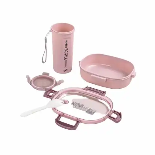 ست ظرف غذا و لیوان مدل ۸۲۴۲ از پلاستیک درجه یک ساخته شده و برای حمل غذاهای داغ مناسب است.