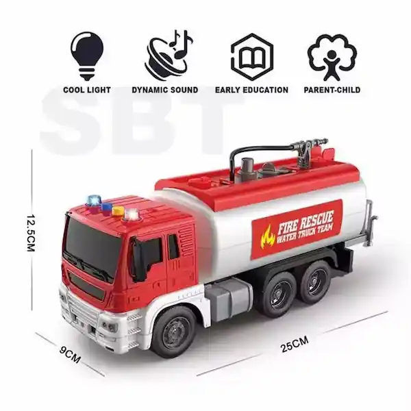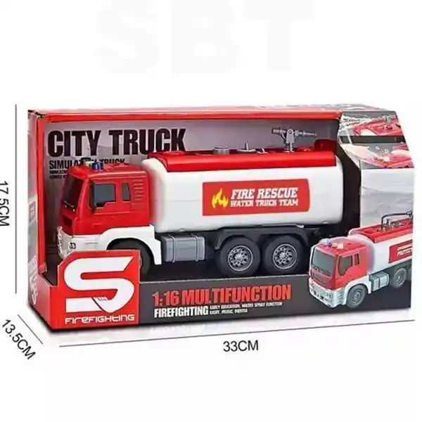 سایر توضیحات: کامیون حمل زباله به طول ۲۷ سانتیمتر و با جلوه نور و صدا . امکان پرتاب آب .
