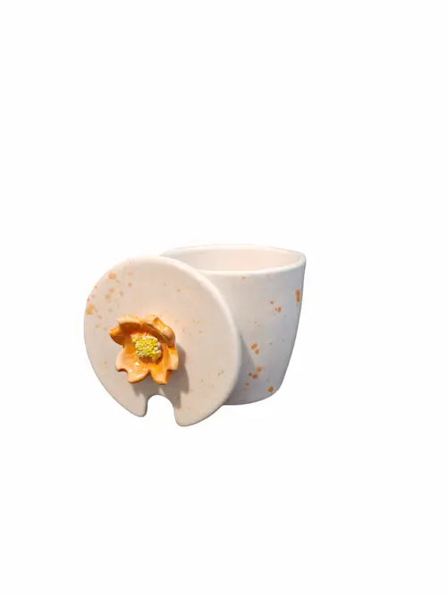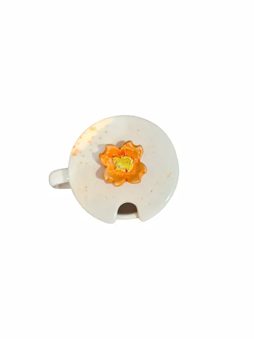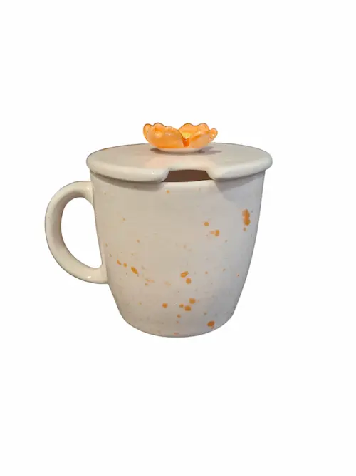 ماگ درب دار طرح گل عمر یک ماگ کاملا دست ساز و از جنس سرامیک است.