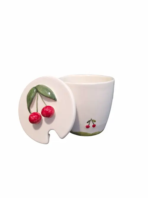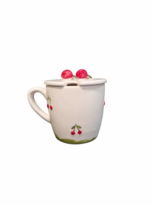 ماگ درب دار طرح گیلاس عمر یک ماگ کاملا دست ساز و از جنس سرامیک است.