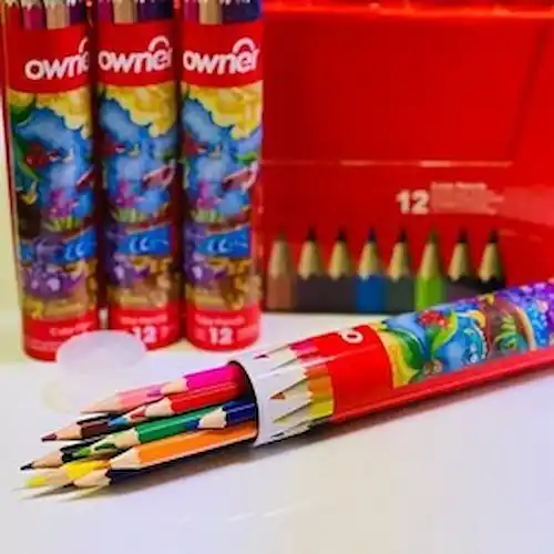مداد رنگی 12 رنگ OWNER دارای بدنهای ششضلعی است. این بدنه به مداد حالتی ارگونومیک داده است که در استفادهی طولانی مدت به دست آسیبی نمیزند و آن را خسته نمیکند.