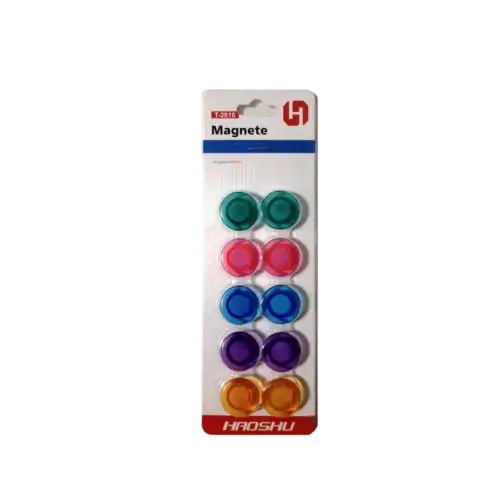 مگنت تخته وایت برد T-2010 یک نوع آهنربا است که برای چسباندن کاغذ، پوستر، فلش کارت و سایر وسایل روی تخته وایت برد مغناطیسی استفاده می شود. این مگنت ها رنگ های مختلفی دارد.