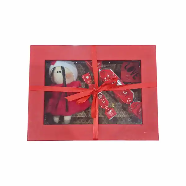 این پک که به صورت جعبه می باشد دارای شکلات و عروسک خرس قرمز و عروسک روسی است.