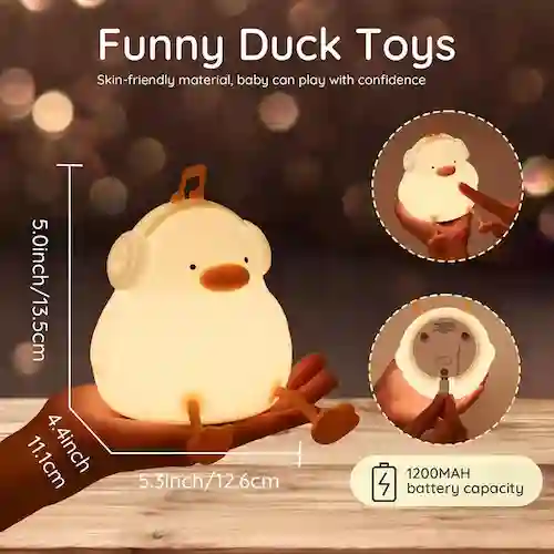 چراغ خواب سیلیکونی اردک تنها شارژی بوده و با کابل تایپ C قابل شارژ می باشد.