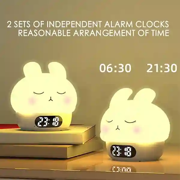 چراغ خواب سیلیکونی ساعت دار مدل خرگوش، دارای ساعت می باشد و همچنین ساعت این محصول دارای آلارم می باشد و قابلیت تنظیم است.