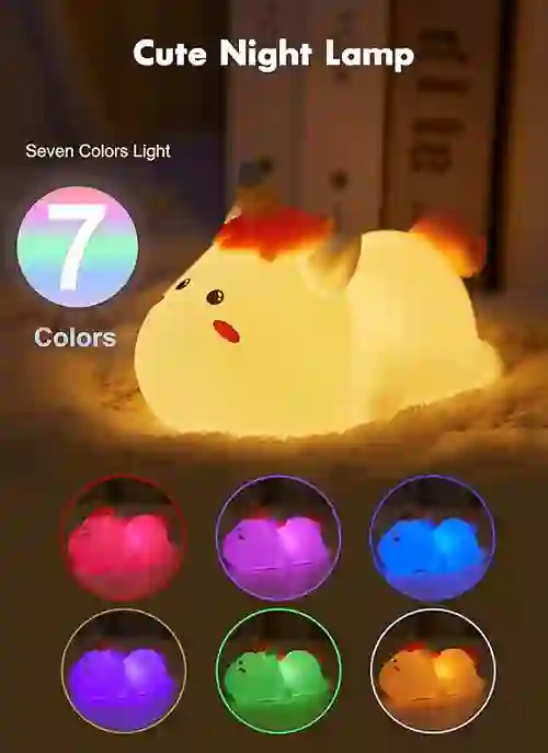 چراغ خواب سیلیکونی یونیکورن ( تک شاخ) خوابیده با ظاهری فوقالعاده زیبا و سیلیکونی شیک، نور شب بسیار دوستداشتنی برای اتاق خواب پسران و دختران است. بچه ها آن را به عنوان یک همبازی در زمان خواب دوست دارند، می توان آن را برای تغییر روشنایی و تغییر نور رنگارنگ با ضربه زدن روی آن کنترل کرد.