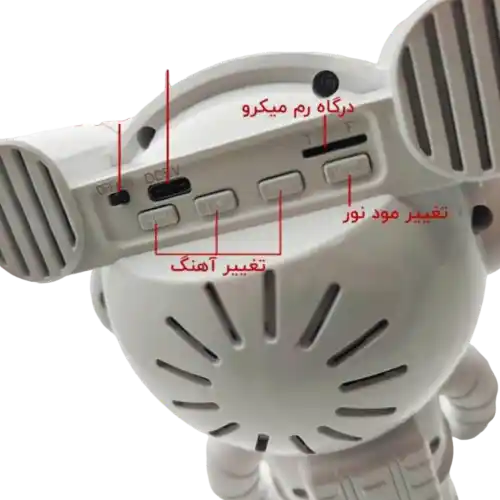 این مدل چراغ خواب، قابلیت پخش نور پروژکتوری داشته و با چرخش سر آدم فضایی، قابلیت تنظیم زاویه پخش نور دارد.