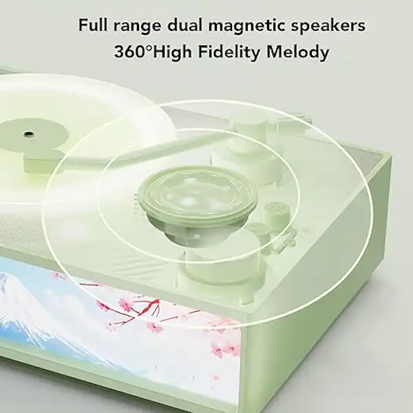 گرامافون اسپیکر محصولی است که هم زیبایی و هم کارایی را به فضای شما میاورد. این گرامافون با ترکیب طراحی کلاسیک و تکنولوژی روز، به عنوان یک اسپیکر بلوتوثی با کیفیت بالا، چراغ خواب عمل میکند.
