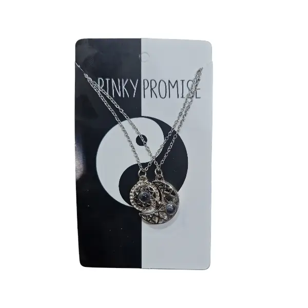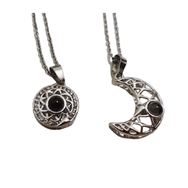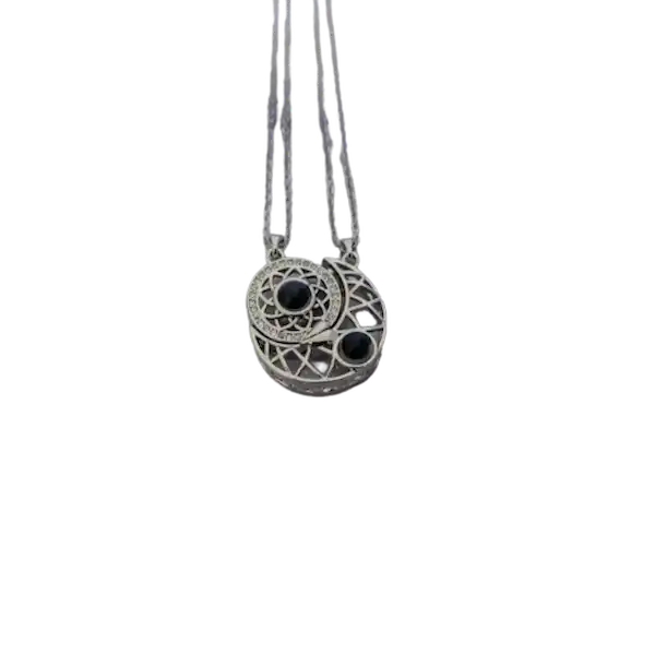گردنبند مدل مهر و ماه ست دوستت دارم به صد زبان زنده دنیا همان گردنبند سریال محبوب جیران است که رنگ آن ثابت است و زنجیر استیل رنگ ثابت دارد. دارای مگنت یا آهنربا در قسمت داخل گردنبند ها که باعث می شود ماه و خورشید در آغوش هم قرار بگیرند.