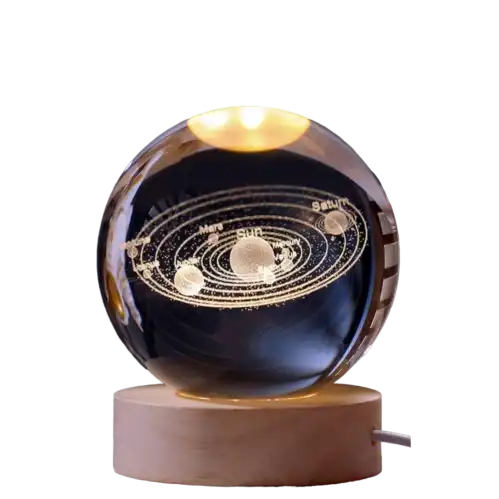 این طرح نمونه منظومه شمسی با تمام سیارهها و قمر های آن است . این طرح برای علاقهمندان نجوم مناسب است.کاربردهای گوی کریستالی گوی کریستالی با پایه چوبی میتواند برای کاربردهای مختلفی مورد استفاده قرار گیرد.